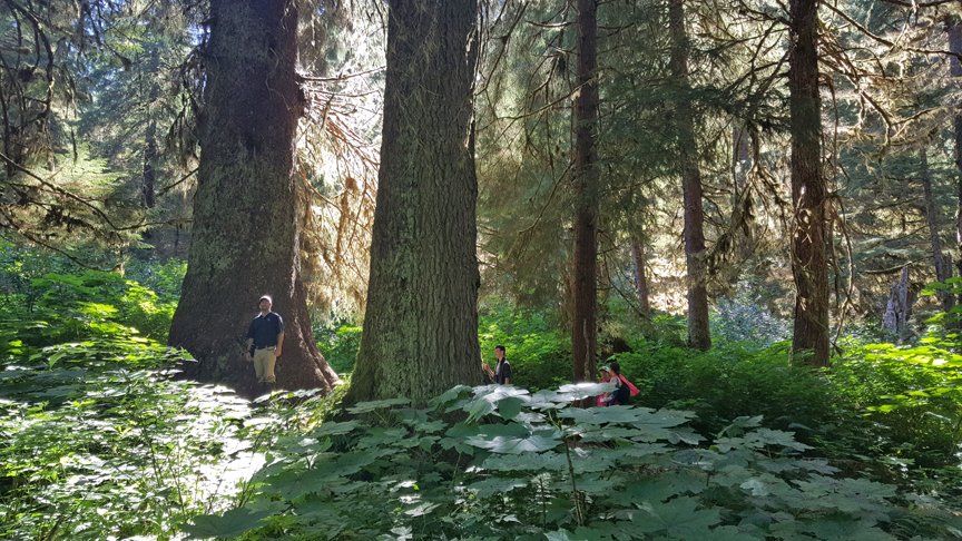 We were lucky to have another clear, sunny day in Southeast Alaska. The National Geographic Sea Lion was anchored in Hanus Bay, on Baranof Island. We spent the entire morning exploring the area around Lake Eva: hiking, kayaking, and crusing in the expedition landing crafts. We saw two brown bears near the stream flowing our of Lake Eva, which is teeming with spawning salmon. Kayakers took advantage of a high tide to paddle around the lagoon, where they could see fish and Harbor Seals swimming beneath them.