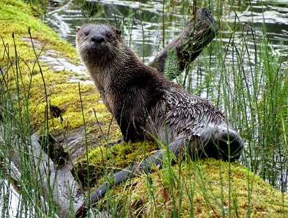 National Geographic Sea Bird glided over a speckled sea that foretold the weather of the day. Just off Peril Strait on Baranof IsIand is Lake Eva, nestled in an old growth forest. An excellent trail parallels a stream that connects the lake with the sea. Sections of slow water have gravel perfect for salmon spawning. The creek leads to a tumbling cascade that ends in a winding, intertidal backwater lined with rockweed, old butter clam shells, dead salmon carcasses, and the tracks of brown bears. This is a well-known destination in Southeast Alaska because of its stunning beauty and fishing potential. The trail has views over the intertidal area, the waterfall, and a pool of milling pink, chum, and sockeye salmon. Those on longer hikes made their way through the forest to the lake and a grove of four giant trees. One group heard some odd noises then watched as two river otters swam skeptically towards them. Their intense curiosity drew them closer and closer as the hikers stayed very quiet and still. From only 30 feet away they stared with amusing curiosity then, seeming satisfied, they crawled back over the floating logs and off to another agenda.