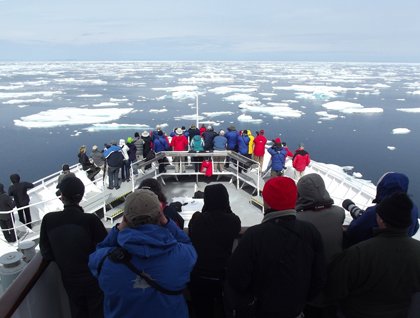 Alberto Montaudon, our undersea specialist, did a plankton tow with the help from our younger guests. A long mesh funnel was dragged behind the ship to collect a veritable soup of microorganisms. We took the treasure to the lounge, concentrated it, and placed the brew under the video microscope that was linked to three monitors. One of our guests, Sandy Litvin, has worked with plankton, so gave us an entertaining tour of the tiny marine world that our ship was passing through. Copepods were the most numerous and jerked erratically past sea urchin larvae, crab zoea, unknown worms, and very tiny clams. A predacious arrow worm gobbled down one of the less fortunate creatures. We later dumped our invertebrate guests back into their salty home.