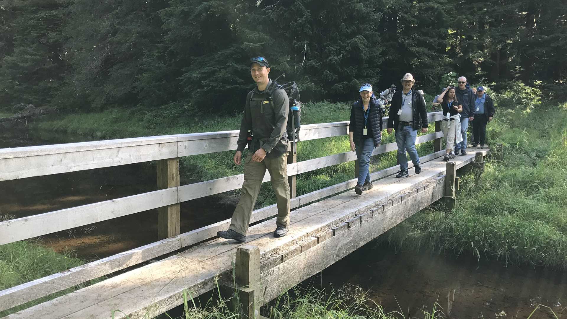 Though it happens quite often, it is always a pleasant surprise when we awake on National Geographic Quest in a completely new and incredible place from where we fell asleep. On this occasion, we awoke anchored along the sunbathed shores of Baranof Island, aside the waters of Peril Strait. After coffee and breakfast, we took to the shore for hiking explorations through the forest towards Lake Eva. Hikers of all paces set off on a trail that winds through Sitka spruce and Western hemlock forests, along the shores of the river bearing salmon and trout—which, in turn, brings bears to the banks. Peeking along the trail through the trees, the hikers watched brown bears and Sitka black-tailed deer on the banks of the river. Other guests and staff explored a short distance up the river via kayaks and stand up paddleboards. These watercrafts also allowed us to explore the bay around the ship’s anchorage.