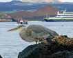 Activities were not over though, because after dinner we made a landing on the island Grímsey. The Arctic Circle runs through that island so we walked up to the monument signpost that marks that latitude and also tells you how far it is to the various big cities in the world. There we had a toast to our great achievement and afterwards took a look at the nearby bird cliffs with hundreds of murres and puffins.