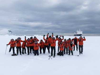 As evening fell upon us and after a warm toast of whisky to both commemorate Sir Ernest Shackleton's explorations as well as our 50th year of Antarctic adventure we brought this day to a close with an after dinner performance by several members of our incredible crew. “Emily & The Spice Boys” brought down the house as the fading light of the Antarctic lit up the distant peaks and glaciers and all the eye could survey with shades of orange, pink, purple, and blue. Truly a very special scene that all of us felt was quite possibly the most beautiful end of a day, as an added bonus the full moon set aloft over this icy world as if to make the scene that much harder to process.