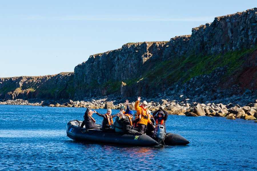 After a late night ashore on Grimsey, the heels were dragging this morning. So we enjoyed a slight sleep in, and with fully caffeinated bodies headed out for a Zodiac cruise of the cliffs and coastal zone of part of the Langanes Peninsula. This isolated eastern promontory was breezy and at times a little foggy, but in the sun and out of the wind we enjoyed idyllic conditions.