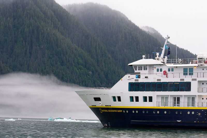 The adventures began early Tuesday morning on National Geographic Quest. We boarded the Zodiacs and cruised through LeConte Bay to see what we could find. LeConte Glacier is the southern-most tide water glacier in the northern hemisphere, and one of the most actively calving glaciers in Alaska. While LeConte Glacier had receded about nine miles up the fjord, it had calved off several icebergs and sent them into the bay to greet us. The icebergs had grounded themselves on the terminal moraine of the glacier, and now stood like giant statues in the entrance to the fjord.