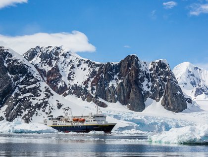 Petermann Island’s small harbor is the site where the French explorer Jean Baptiste Charcot and his crew, aboard his ship Francais became the first people ever to over-winter in Antarctica in 1904. Most of us went directly ashore to visit the Gentoo and Adelie penguin rookery while the rest opted to first cruise among the icebergs and drifting pack ice by Zodiac before joining the others at the rookery. By 12:30 we were all back aboard for lunch and an afternoon of pushing southward through heavy pack ice. The sunny windless conditions produced superb reflections of ice, rock, and sky! In the late afternoon our captain turned the ship back northward where we again traversed the scenic Lemaire Channel.