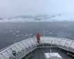 Morning began early on National Geographic Explorer with a beautiful cruise through the LeMaire channel. As the ship passed beyond the southern end of the channel, it was surrounded by ice with spectacular views of sea ice and icebergs. The Zodiacs were soon lowered to take everyone ashore at Pleneau Island for up close encounters with penguins. In the afternoon, Zodiacs zipped around grounded icebergs as everyone was treated to a cruise through monumental ice sculptures created by glaciers. The day ended as it began, with a trip through the always awe-inspiring LeMaire channel.