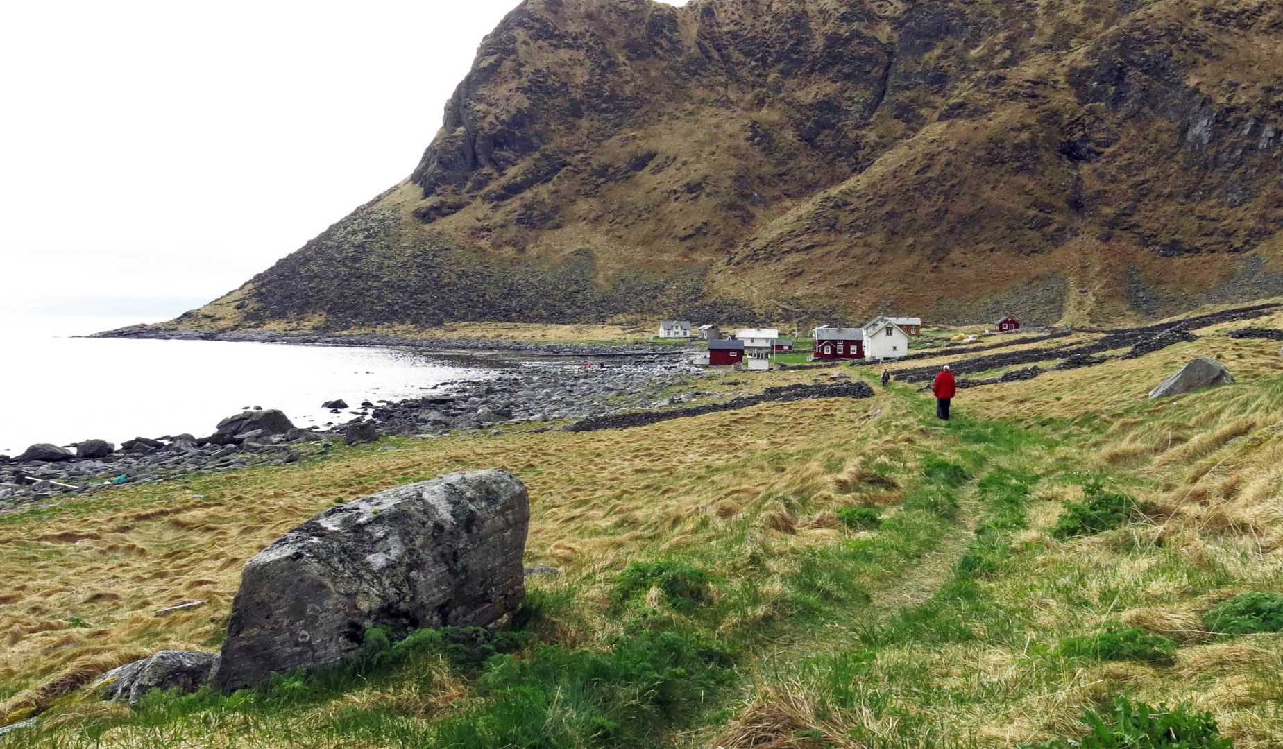 We woke up just as National Geographic Explorer anchored off Måstad on the south side of Værøy. This is one of the largest islands in outer Lofoten. Måstad is a small abandoned fishing village. The inhabitants of this village used to make a living from fishing, small-scale farming and harvesting sea birds and eggs as part of their food supply. The puffins were caught with the help of a special breed of dog called the Norwegian Lundehund, which translates to puffin dog.