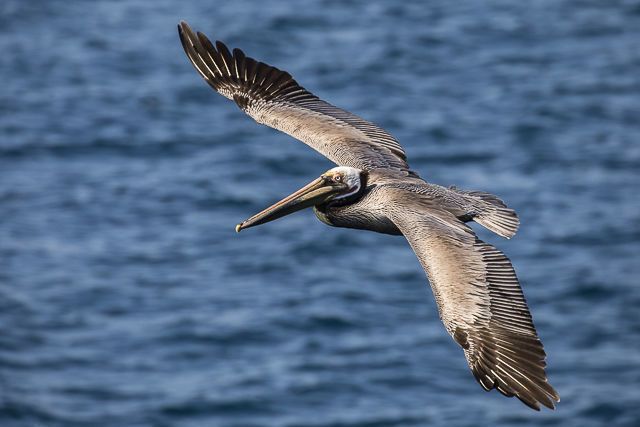 A few miles offshore, we found a huge number of brown pelicans and other sea birds busying themselves over a feeding frenzy. The dolphins in the area seemed to be driving the small schooling fish—most likely sardines—to the surface, where the birds were then able to scoop them up from the sea surface. It was a pure maelstrom of wings, beaks, and splashes out there, which made for excellent photography.