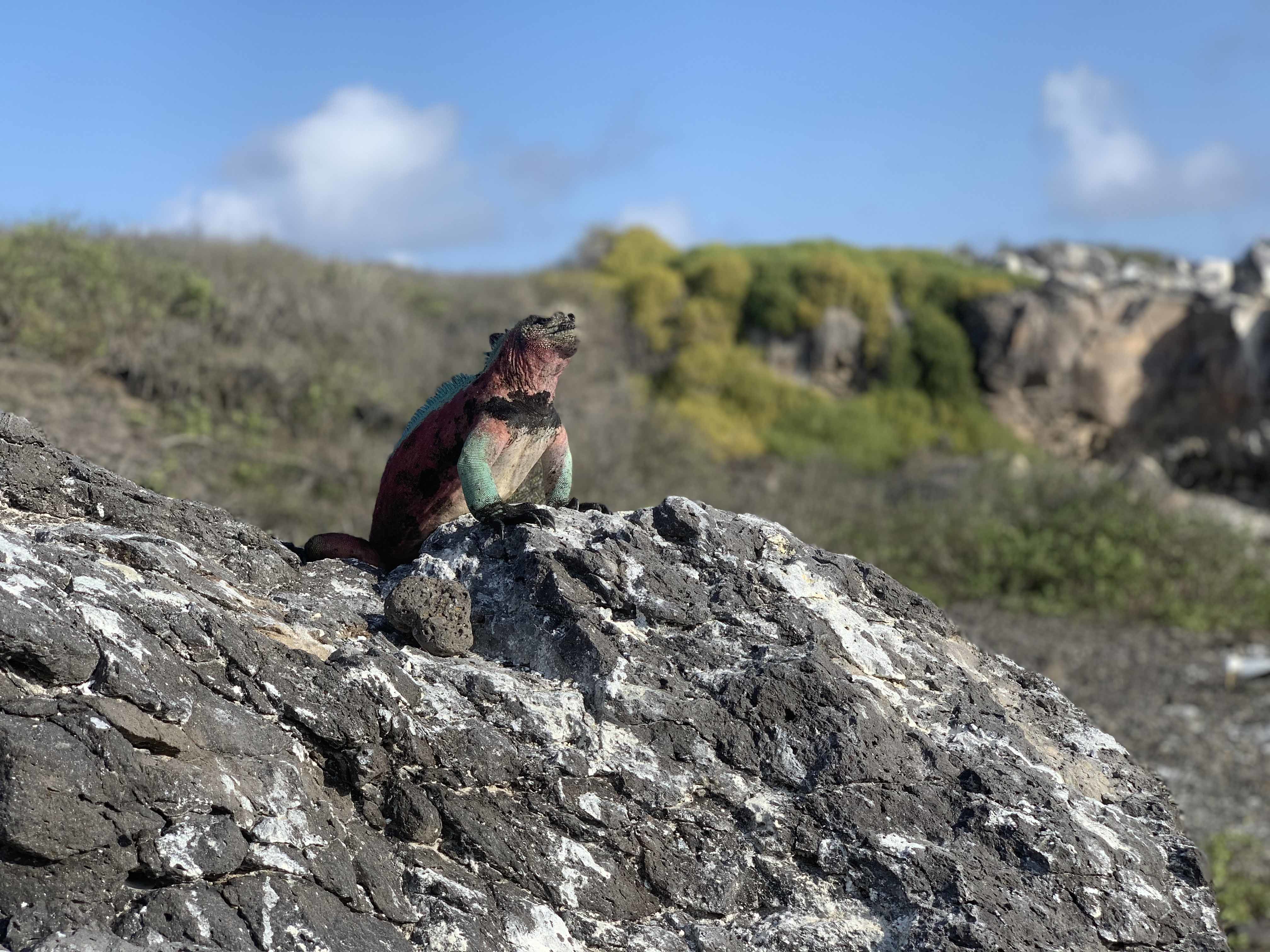 As soon as the snorkeling was over, we boarded our expedition landing craft again for cruises around the rookery, and we discovered other aspects of sea lion life. The huge mature males, with their dark fur and prominent sagittal crest, were chasing other males around, while the pregnant 200-pound females peacefully slept on the boulders. Flying above the islet, or just perched in the middle of the cliffs, frigatebirds, blue-footed and brown boobies, yellow-footed gulls and cormorants, among others, were also part of the scenery.