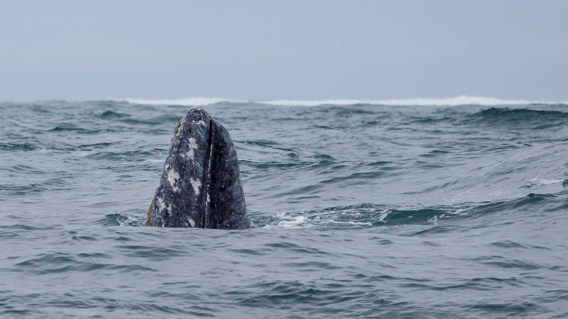 We awoke to a drizzly morning, but that didn’t dim our enthusiasm for getting out in small boats to look for wildlife. It was a strong start to the day when we spotted gray whales and bottlenose dolphins during the pre-breakfast yoga/stretch class. We donned raingear, got in our boats, and headed out into Magdalena Bay.