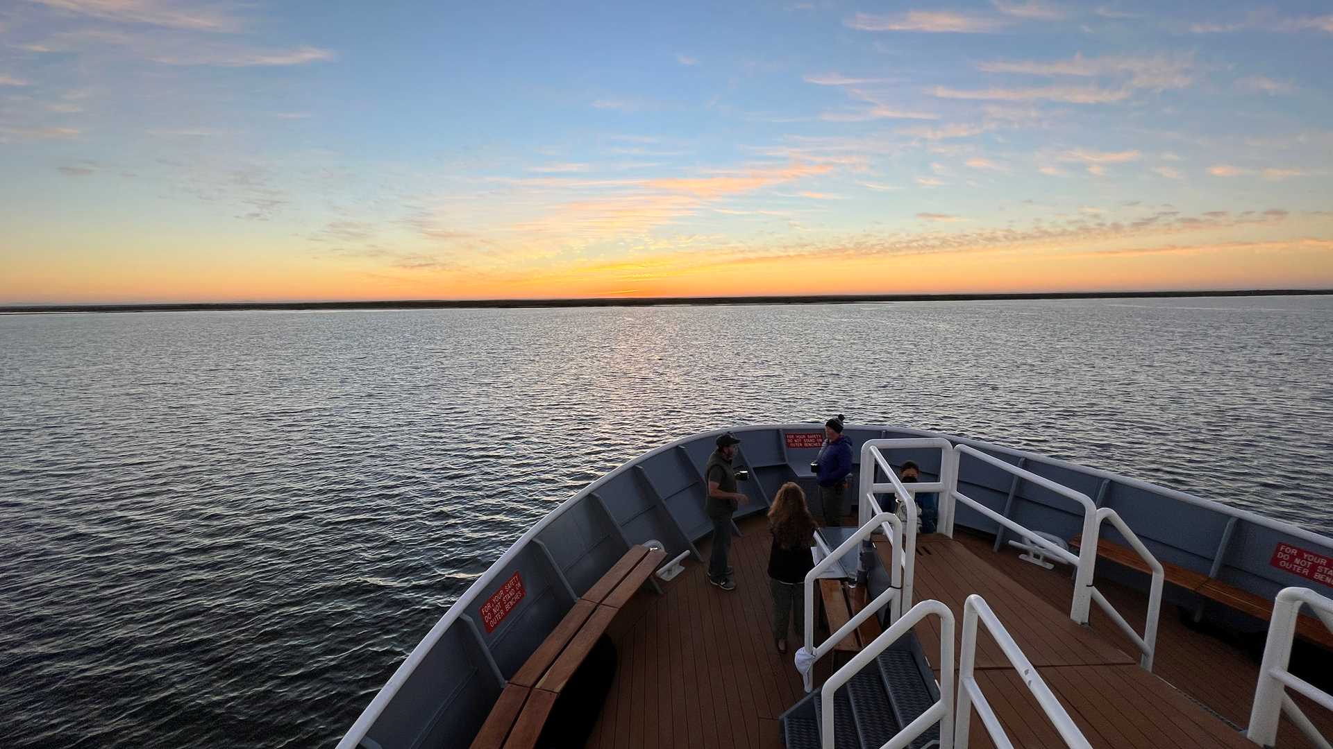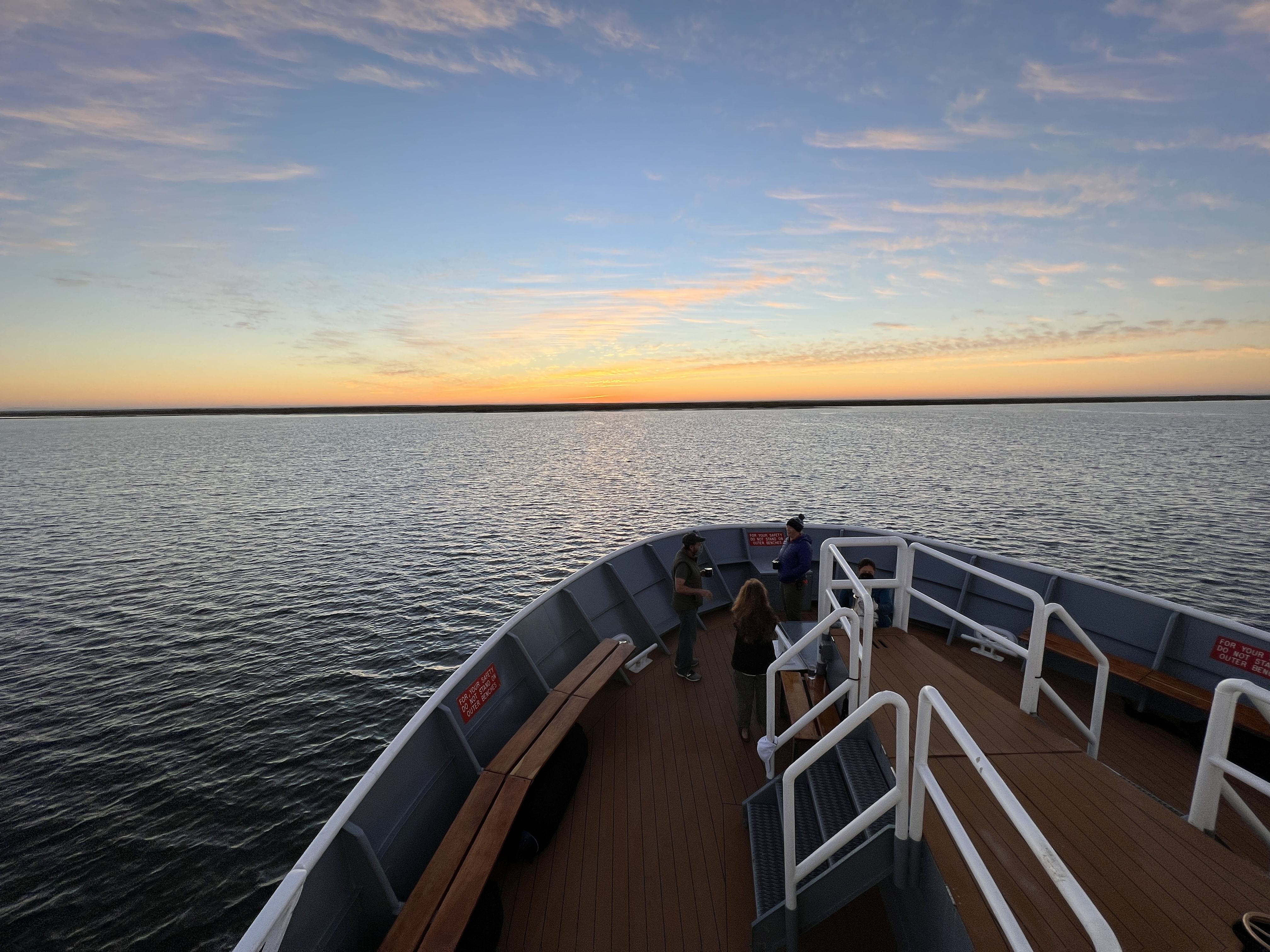 We awoke this morning on National Geographic Sea Bird to yet another colorful sunrise in the northern part of Magdalena Bay here in Baja California, Mexico. Shortly after an excellent breakfast prepared by our talented galley team, we met our local “pangeros.” We boarded Zodiacs and headed out to explore.