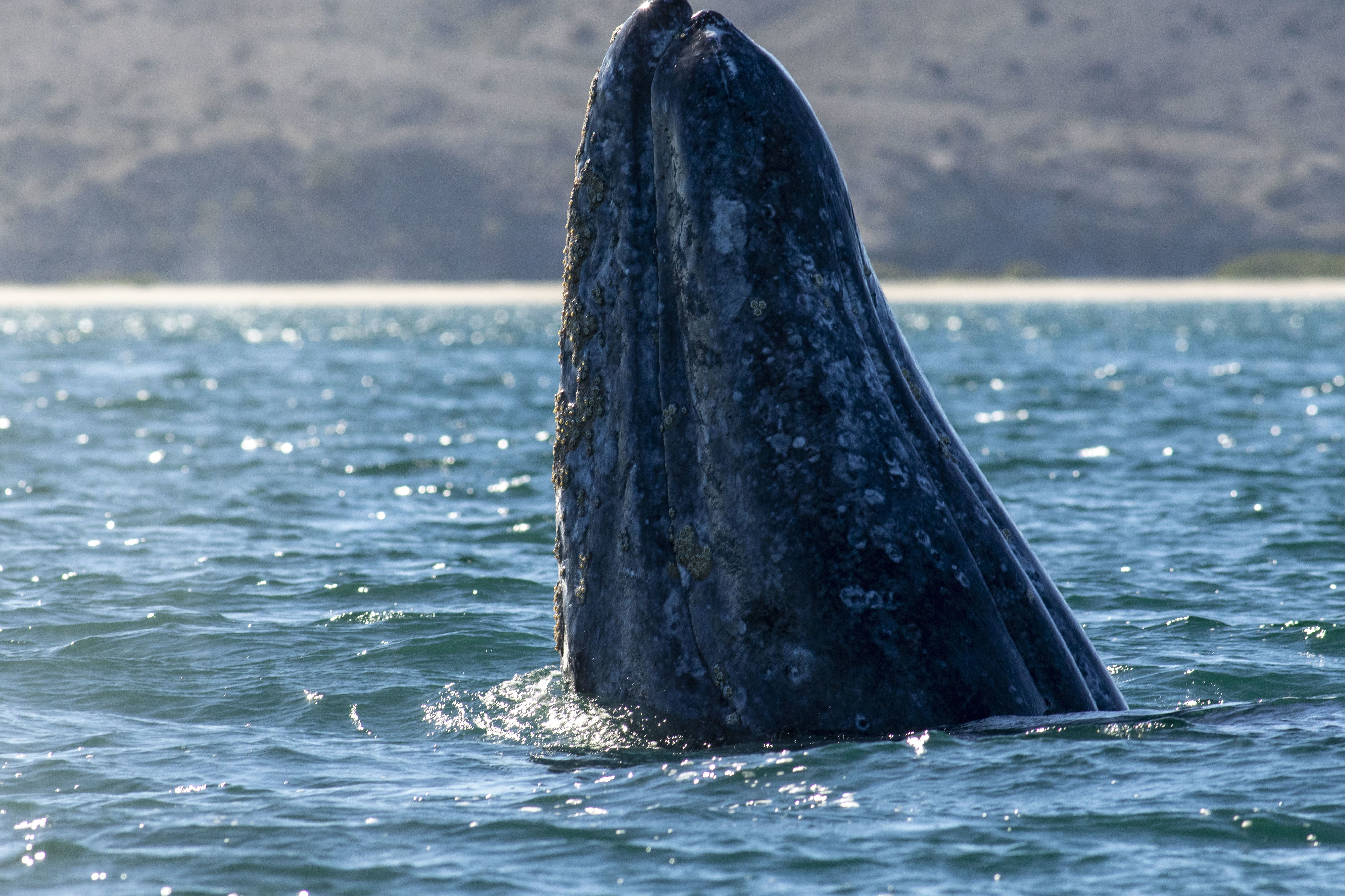 Glassy waters greeted us this morning in Magdalena Bay. Located in the southwestern corner of the Baja Peninsula, the abundance of fish attracts a variety of other marine life. Cormorants, pelicans, dolphins, sea lions, and even a sea turtle were seen from the bow as we cruised the bay just after sunrise. It wouldn’t be long until the first whales were spotted – gray whales were sighted just as breakfast was served.
