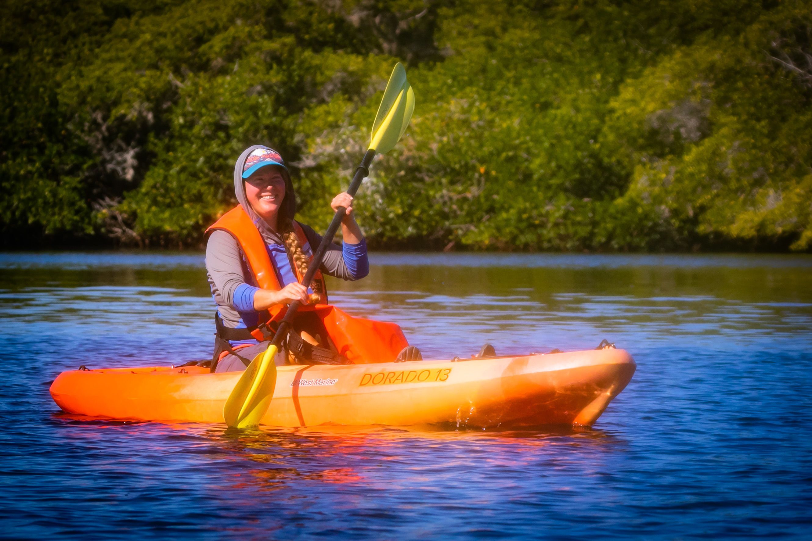 After breakfast, some of us cruised through the mangroves on Zodiacs while others explored by paddling kayaks. We enjoyed seeing firsthand the diversity of life provided by red, black and white mangroves. In addition to seeing fish and rays skitter beneath our boats in the clear waters, we also enjoyed great views of herons, ibis and even a larger group of godwits.