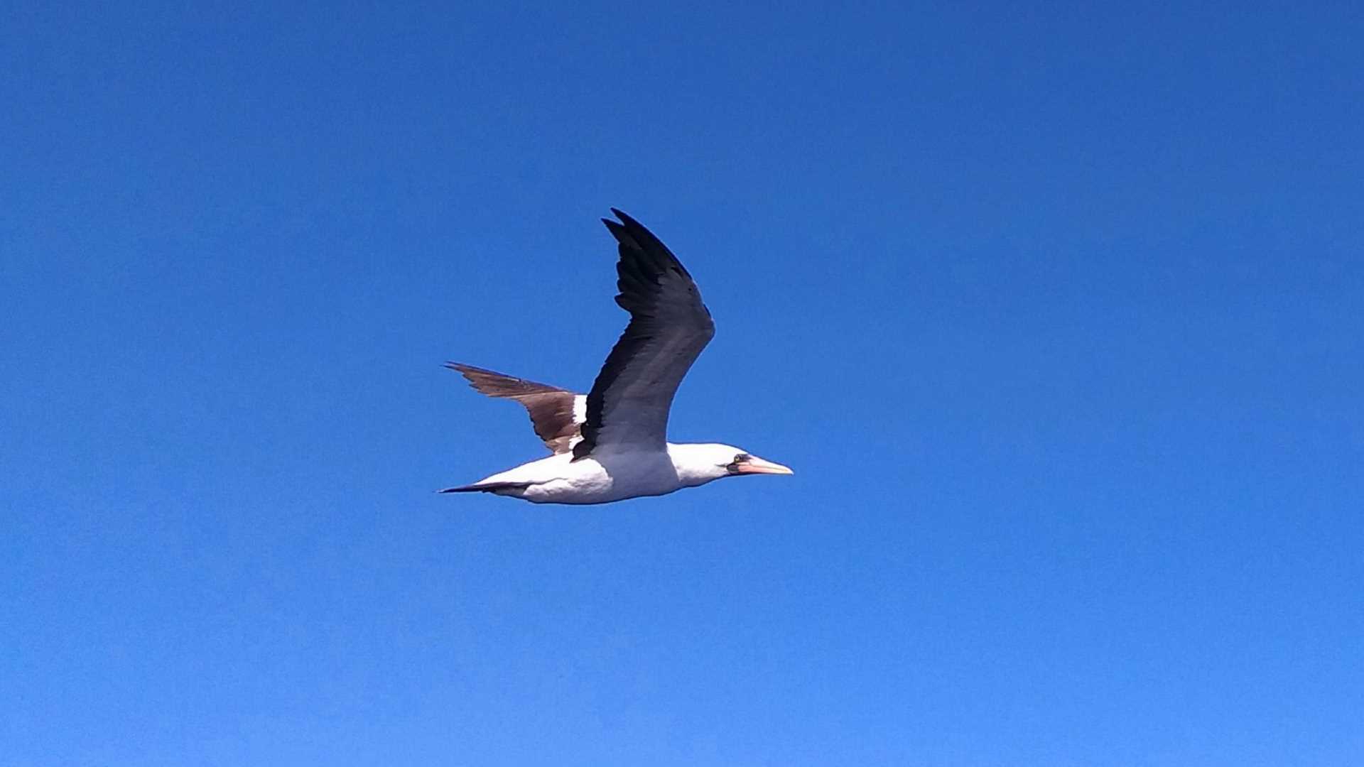 For the second part of our expedition, National Geographic Venture navigated along the Pacific side of the Baja California Peninsula from Los Cabos to the Magdalena Bay complex. This morning, we observed several blows of gray whales. This is the southernmost nursing lagoon for these amazing animals, and we had perfect weather conditions for whale-watching from the ship. The presence of several masked and Nazca boobies, not commonly seen in this area, was a highlight. We enjoyed great vistas of the landscape, with Santa Margarita Island flanking Almejas Bay and Magdalena Island flanking the largest bay. We also enjoyed seeing the winding, shallow channels of the north side, where mangrove communities are abundant. While cruising, guests enjoyed a presentation on the kleptoparasitic behavior of the magnificent frigatebirds, which are abundant in the bay complex.