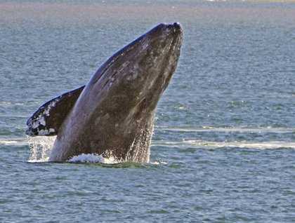 Dawn broke as we motored north along the coast towards the entrance to Magdalena Bay and the adjacent waterways, our destination for the remainder of our voyage. Bright sunlight bathed the deep blue sea. As morning progressed, we spotted several sea lions, shearwaters, and now and then a sea turtle at the surface. Once we entered the mouth of the bay, an announcement came over the PA that the first gray whale of the trip was a short way ahead. Everyone flocked to the decks for a glimpse of this special creature.