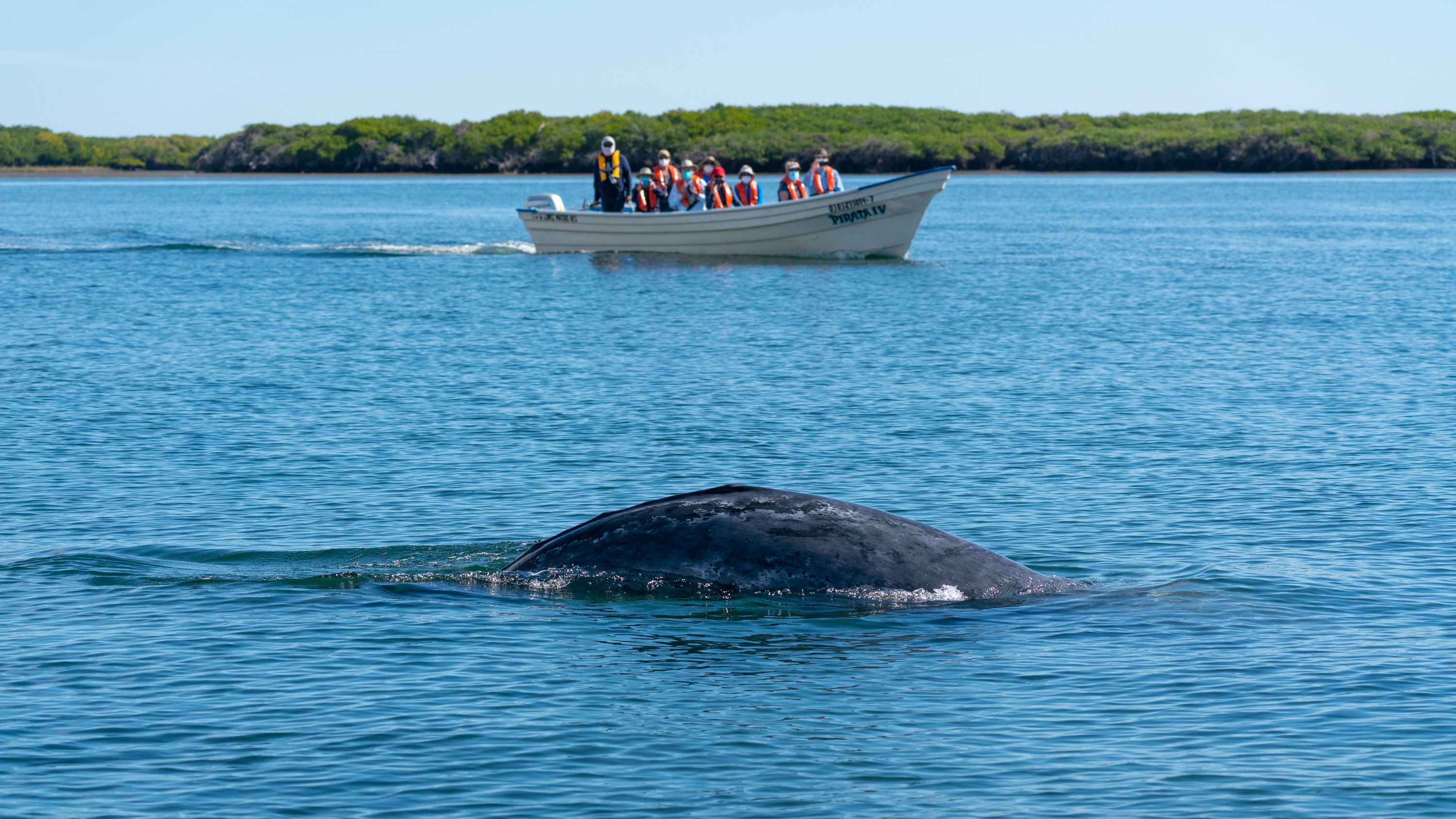Today we set out to find gray whales in the lagoons on the Pacific side of the Baja Peninsula. We left National Geographic Venture early this morning, taking coaches north to the small town of Lopez Mateos.