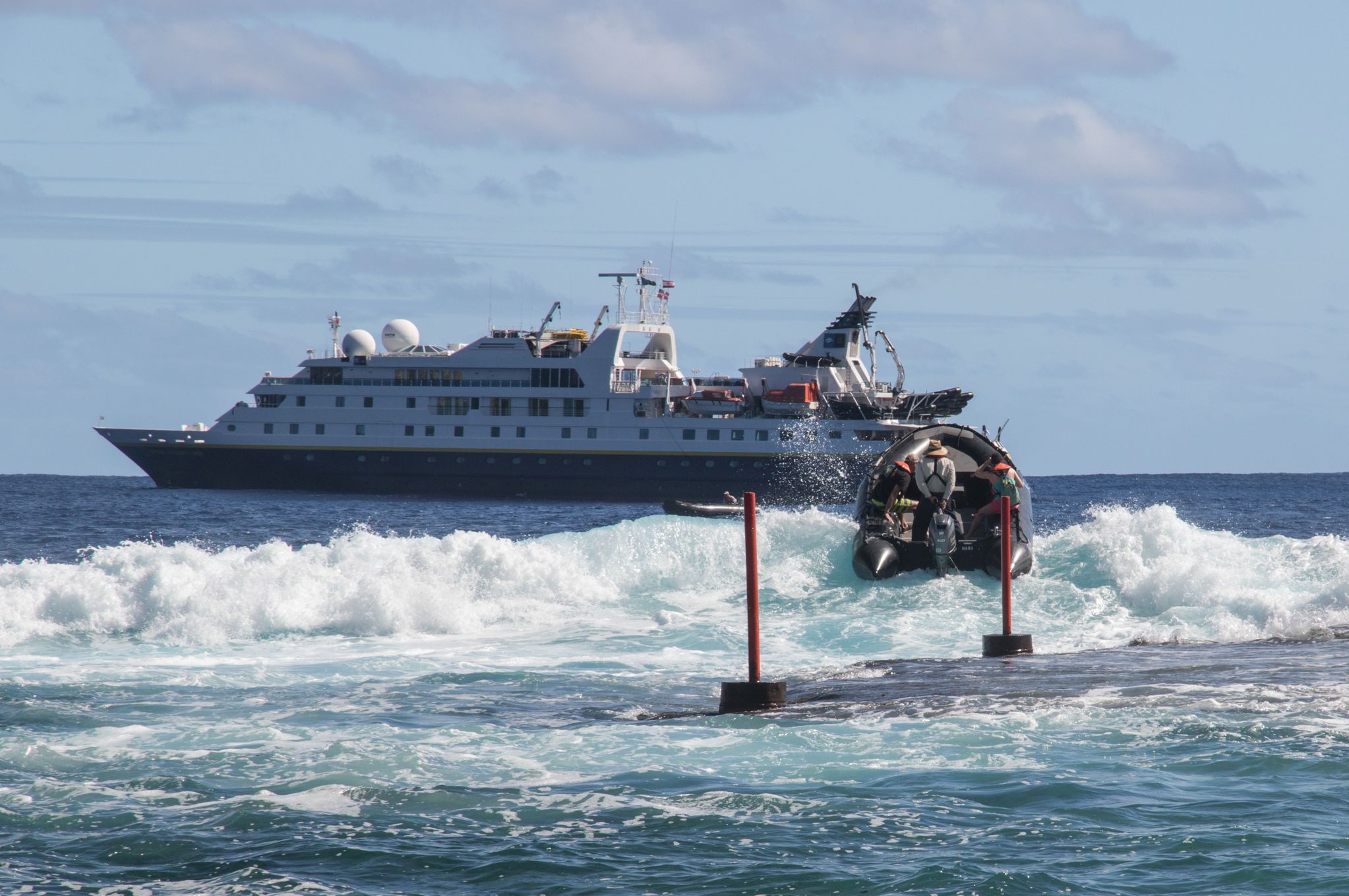National Geographic Orion made good time en route from the Society Islands toward the Tuamotu Archipelago. As dawn broke, the early risers were rewarded with the first glimpses of our destination, Makatea. The island is unlike anything else in the region, in stark contrast to the flat motu’s and gradual islands, Makatea meets you with 80m high white cliffs. The island is a raised coral atoll and, owing to its significant phosphate deposits, has a history of intensive mining between 1917 and 1964.