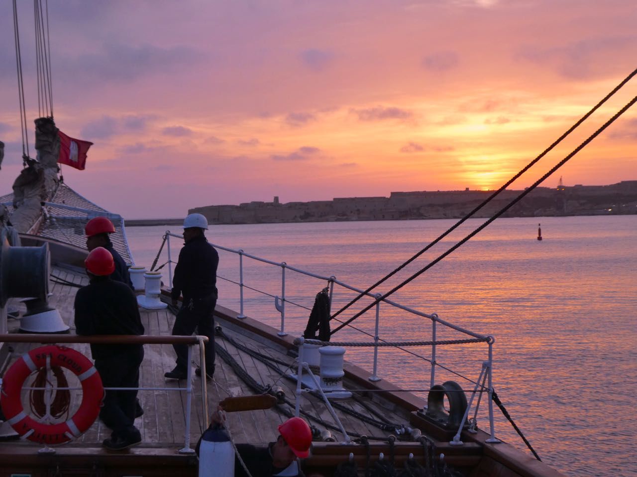 Talk about starting a voyage with a wow! Sea Cloud slipped the mooring lines in the pink glow of sunrise and sailed out of the magnificent, fortified Grand Harbour of the island of Malta. Despite the early hour, the decks were abuzz with excited travelers and clicks of rapidly firing camera shutters. The Grand Harbour is a 4-km-long inlet that sits between the walled city of Valetta and the older towns of Birgu (Vittoriosa) and Senglea. Each is fronted by massive Renaissance fortifications from which the Knights of St John, the Hospitallers, bravely defended the island from the Ottomans during the Great Siege of 1565.