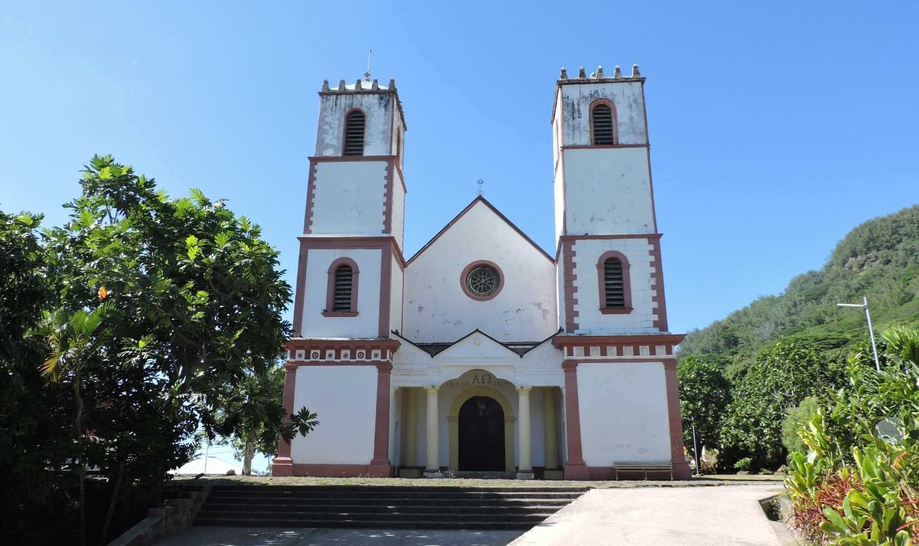 In 1834, three members of the Order of the Sacred Heart monastery in Valparaiso, Chile, led by Father Louis Honoré Laval, came to Mangareva and began to convert the Polynesians to Christianity. Once King Maputoea converted, Laval gained complete control over the populace, and during the next three decades he oversaw what historians call “the death of a people.” He established a theocratic dictatorship, including ecclesiastical police to enforce a strict moral code, and he exerted control of the trade economy of pearls with the outside world. Laval insisted on locking up the entire female population in the convent whenever whaling ships arrived. The Polynesian marae and statues were destroyed and several Christian chapels were constructed on their sites. After a vision, Father Laval ordered the construction of St. Michael’s Cathedral – the largest church in the South Pacific. All able-bodied persons were put to work on the project. It took nine years to build and when completed it could accommodate 1,200 people. In addition, a palace for the king, a monastery, a convent, a prison, a textile factory, and coastal watchtowers were also constructed. It became a city, the likes of which no Polynesian island had ever seen.