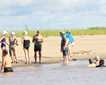 After breakfast we zipped to shore to embark upon a variety of walks. Some strolled leisurely along a trail practically littered with wildlife while others sweated their way uphill to enjoy commanding views of the surrounding area. Manuel Antonio is well known for its tremendous wildlife viewing opportunities, and today did not disappoint. It was hard to make any progress on the trail because every few minutes another exciting species was sighted. We had terrific views of white-faced capuchin monkeys, which were sprawled on the tree branches, draped over the palm fronds, grooming one another, scratching the proverbial monkey itch, and generally causing mayhem in their cheekiness and desire to acquire human belongings. Several coatimundis were spotted ambling along the beach, blinking at us and trying to avoid the attention of the grimacing capuchins. Many sloths dangled from the trees, some obsessively scratching themselves, others slowly munching leaves, and most taking naps. The ubiquitous leaf-cutter ants marched along the trails, a variety of birds were heard and watched, and some folks had a chance to see squirrel monkeys. A family of raccoons stopped by our beach station, scampering on agile paws with bottle-brush tails spelling mischief.
