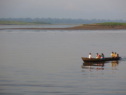 Our first morning in the Amazon dawned beautiful and clear. We were up with the sun, and excited to open our curtains and get our first look at the Amazon in the daylight. Some of us looked straight into the lush green of the rain forest and others had the wide Marañon River right outside our windows. On the river, up well before us, were local people using dugout canoes (the local vehicle of choice) to go about their daily activities.  Some canoes built for just one person with a paddle, others, bigger with a small motor and carrying a family of six.