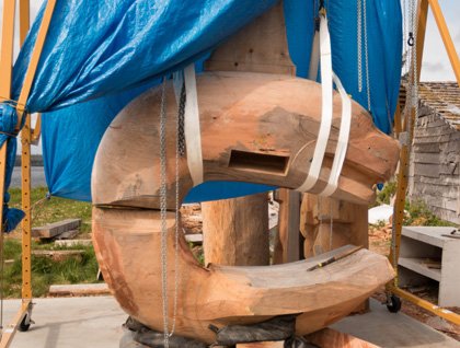A day is what you make of it. Being in a certain place or with certain people can help out significantly, but ultimately it all depends on your approach to see how it all shapes out. Greeting yet another sunny day in the Pacific Northwest with appreciative glee, we headed out in buses to the northern end of Haida Gwaii. Moving far faster than we have in over a week and yet still able to soak in the beauty of the coastline, this time from the fresh perspective of looking out at the ocean instead of from it. The reason to temporarily abandon our trusty vessel we’ve come to call home was that we had received special permission to visit the homes of two renowned artisans. These men are local legends and to be invited into their homes is akin to getting to peek behind the curtain.  Master carver Jim Hart’s house is also his workshop and is almost a physical manifestation of his personality. Practical tools lie on each surface, along with countless curiosities, new and old alike, while the crisp smell of cedar delightfully permeates everything. Much like his artwork, it all swirls together in a chaotic collection of color that somehow still fits together perfectly. In mediums of wood, stone, and metal, Jim uses his expert skills to bring life to these inanimate materials and keep the memory of his culture vibrantly alive.
