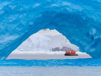 For our afternoon frolics we tucked the ship into Cierva Cove and took to our Zodiacs to explore a world of falling snow and glacial ice. So many magic moments: a sudden fishing fleet of gentoo penguins surfacing in unison; crabeater seals on ice floes, sleeping off their midnight banquet of krill; a lone, languorous leopard seal hauled out on ice, the very epitome of feline grace and athleticism, bullet head, battleship gray, and a set of teeth that gives penguins nightmares. Looming out of the drifting snow, huge icebergs with giant blue ice caverns and one with a dangerously seductive arch. Best of all, to gasps of surprise, a sleek black minke whale surfaced within yards of the Zodiacs, its hooked fin arcing down into the depths. What a diary of delights this day has brought us, perfect polar paintings all.