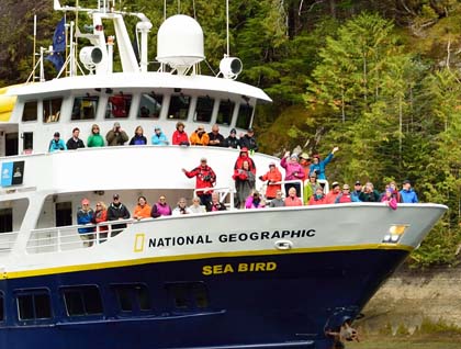 Bright sun greeted the National Geographic Sea Bird on our final day in Alaska as we made our way up the Behm Canal towards New Eddystone Rock—a basalt tower named by Capt. George Vancouver in 1793 after a lighthouse in Plymouth, England.