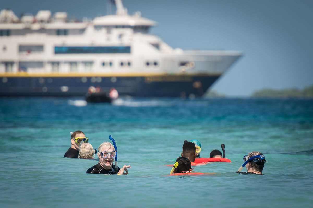 Today the National Geographic Quest arrived to the Moho Caye. After breakfast, guests began the exploration of this gorgeous place. Some decided to walk around the perimeter of this beautiful Caye while some others, ready with binoculars, went for a birdwatching experience. Most of us were interested in snorkeling in the surrounding coral reef. Many of the young explorers that came along with their family spent time learning how to peel coconuts as a survival skill, they also paddle-boarded and kayaked. The weather was great with a gentle breeze.