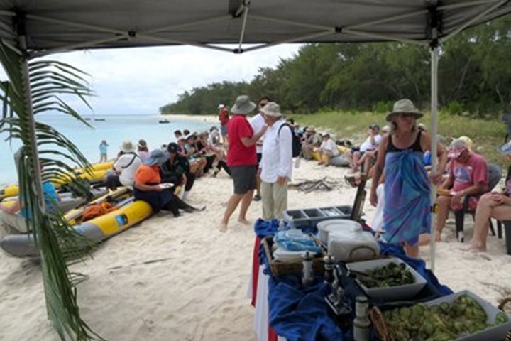 They say the tide waits for no man and that certainly was true for us this morning as we embarked for a Zodiac cruise of Montgomery Reef at 6:00 a.m. The sun had only just peeked over the horizon but this was the time when the tides were best for observing an amazing natural phenomenon. On a falling tide, Montgomery Reef rears out of the ocean like a waking giant casting off its watery blankets. Hundreds of silver waterfalls run off the huge sandstone block, racing their way to the open ocean as the tide recedes. This massive movement of water attracts a lot of wildlife and we enjoyed watching egrets and herons fishing in the shallows, while the sharp-eyed among us spotted green sea turtles in the channel. En route back to the ship we made a quick stop at an emerging sandbar, where our hotel staff had kindly set up a juice bar to greet us. Following this, we got back to the National Geographic Orion just in time for breakfast!