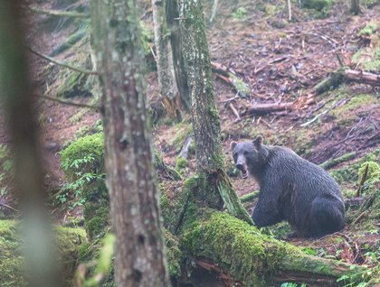 We arrived ashore to find the very high tide was up to the tree line and covering the trail. The first groups ashore had to bushwhack through the forest just to find the bear trails. The hikers found a maze of trails through the beautiful, rich and damp forest. A beaver lodge, massive trees, and lush undergrowth were the some of the highlights. Kayakers jumped in their boats and explored the rocky shoreline. “Bear at the falls.” Thank goodness for the radios. The kayaks and all of the groups gathered along the river’s edge or in the forest to see the bear. Then another came out of the woods, and eventually there were three bears at the river looking for fresh salmon. The rain had stopped, salmon were jumping in the falls, bears were feeding in the river, and we were right in the thick of it. This was Southeast Alaska in its entire splendor. What an incredible day!