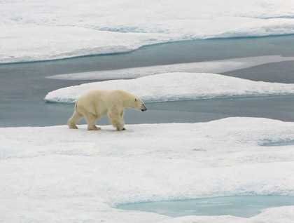 The morning wake-up call came earlier than expected, but a call that includes the words "polar bear" and "ice floe" will rouse us from our slumber. We groped for our warm clothing. We had moved northward during the night, along the east coast of Ellesmere Island. In the early morning we encountered a patch of "polar bear ice," the mixture of first-year and multi-year sea ice the is the preferred habitat of the ice bears. Our binoculars seek out any small ivory-colored dot on an otherwise white ice surface. We strain to see the dot move. Yes, it is a bear, spotted at a considerable distance. We approach, ever so slowly, stalking the polar bear much as the bear stalks seals on the ice.