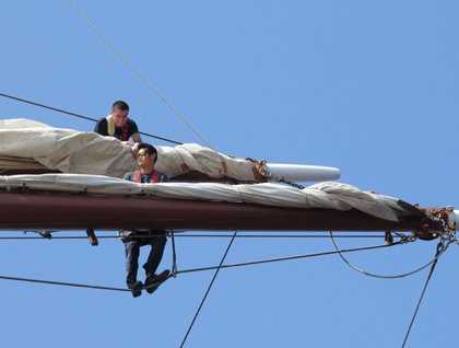 Another beautiful day in the sparkling Aegean began with a relaxed morning of sailing. The meltemi winds, normally active in July and August, have persisted well into September this year. While providing ample opportunity for sailing, these northerly winds can cause frequent itinerary adjustments, as the strong winds prevent the ship from entering certain ports. This morning, with the lower and upper topsails and topgallant sails set, we sailed in the direction of the island of Naxos.