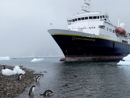After lunch we dropped off staff members Eric Guth and Santiago Imberti to have a very steep hike up a hill near Orne Harbor to collect some time lapse data for the Extreme Ice Survey. We try to help out as many scientific research programs as we can while in this challenging area. The wonderful result is that we are some of the first people to see what the cameras have recorded throughout the last winter and early summer. All and all it was a great way to end our time in this unique and very special part of planet Earth.
