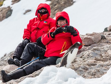 Early afternoon found us in Paradise Bay, an absolutely stunning harbor surrounded in ice-capped mountains and glaciers. Of special interest was the Argentine research station (Almirante) Brown Base, situated on the banks of the bay and currently being overrun by nesting gentoo penguins! Many opted to kayak here amongst the ice, but others chose instead to explore the ice and glaciers via Zodiac.