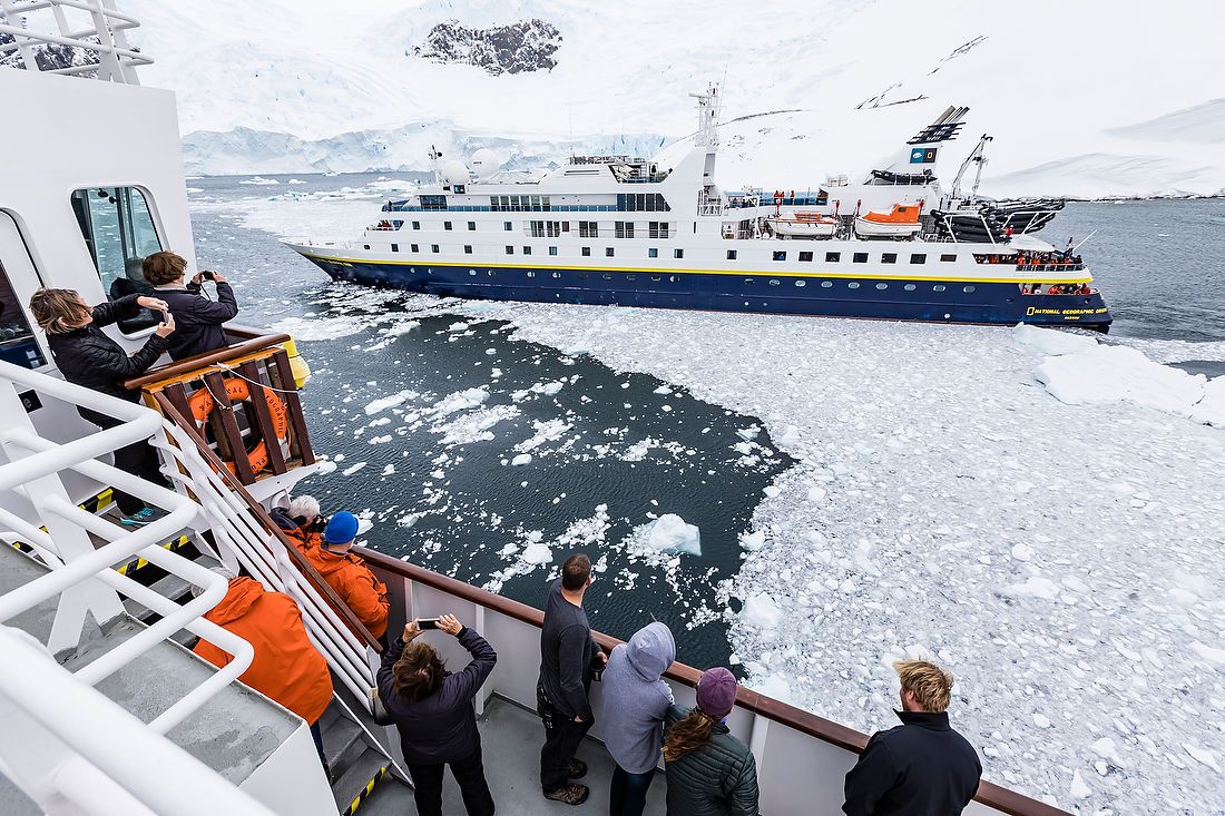 After lunch, National Geographic Orion headed further south. Our destination was the Lemaire Channel. “Kodak Alley,” “Pixel Pass” - the origin of the various names bestowed on this scenic channel was obvious. It was a beautiful and narrow pass, bordered by steep mountains and glaciers, and chock full of ice. On the other side, we passed by the Ukranian Vernadsky Station. A small inflatable boat with several bundled humans approached from the distance and waved us down. We soon realized that they were researchers from the station, and, having spent the entire winter there, were eager to socialize with us. So after dinner we headed to the station and were given a tour of their facility, which was great fun. The evening was capped off with shots of homemade hooch – Ukranian vodka – at their wonderful little bar. Soon, there were smiles and rosy cheeks on everyone’s face, which lasted the whole Zodiac ride back to the ship, and late into the night as we laughed about another amazing day.