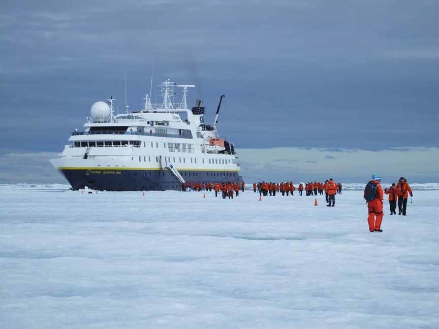 Today started very early with National Geographic Orion working its way through pack ice, which we had finally encountered in the southern end of Marguerite Bay. This was a new experience for most of the guests, and it was fascinating to watch the captain and his bridge team navigate through this amazing sea.