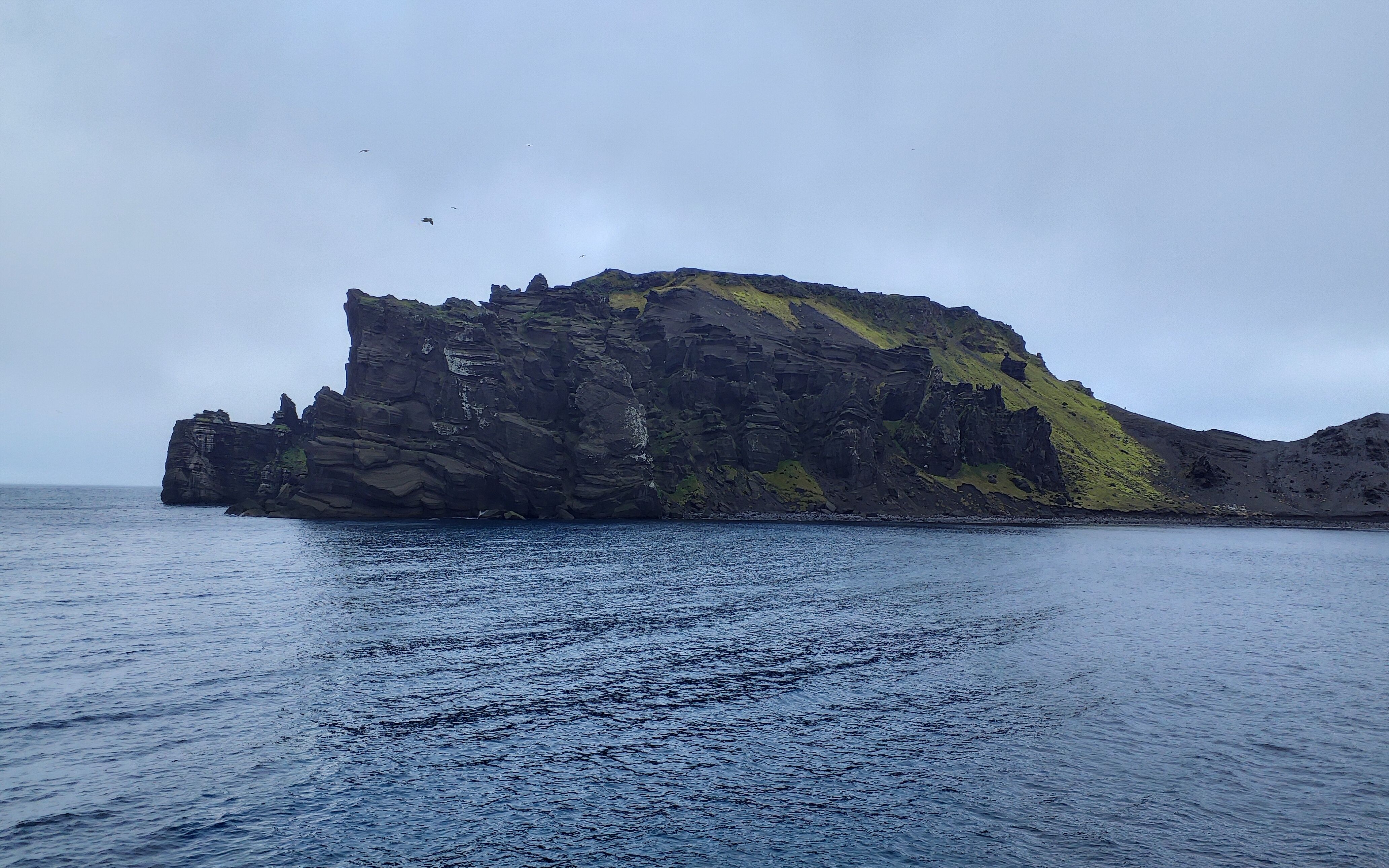 During lunch, the captain brought us to the end of the fjord. We came closer to the glacier and enjoyed the changing view of cliffs, slopes, and waterfalls. After lunch, we cruised along these cliffs in Zodiacs. Curious but apprehensive harbor seals surfaced here and there, watching us from a distance. The water was so clear and the cliffs were so vertical that guests were able to spot sea urchins, sea stars and other bottom-dwellers underwater. Zodiacs approached waterfalls within the sprinkling zone and, in a small secluded fjord, guests were delightfully surprised by a hotel staff Zodiac serving a selection of drinks.