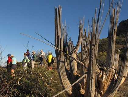 Exploration of terra firma was also an option for the afternoon. Some guests chose to explore the winding arroyo up and across the island for a look over the north-facing cliff. Others chose more of a meandering walk through the cardon forest. While the island is home to the endemic giant barrel, a more diminutive endemic species stole the show, the Isla Santa Catalina rattleless rattlesnake. In possession of only one button on its tail, this snake cannot create the adrenaline inducing “buzz” associated with other rattlesnakes. From a safe distance we took its picture and continued our investigations of the island and its denizens.
