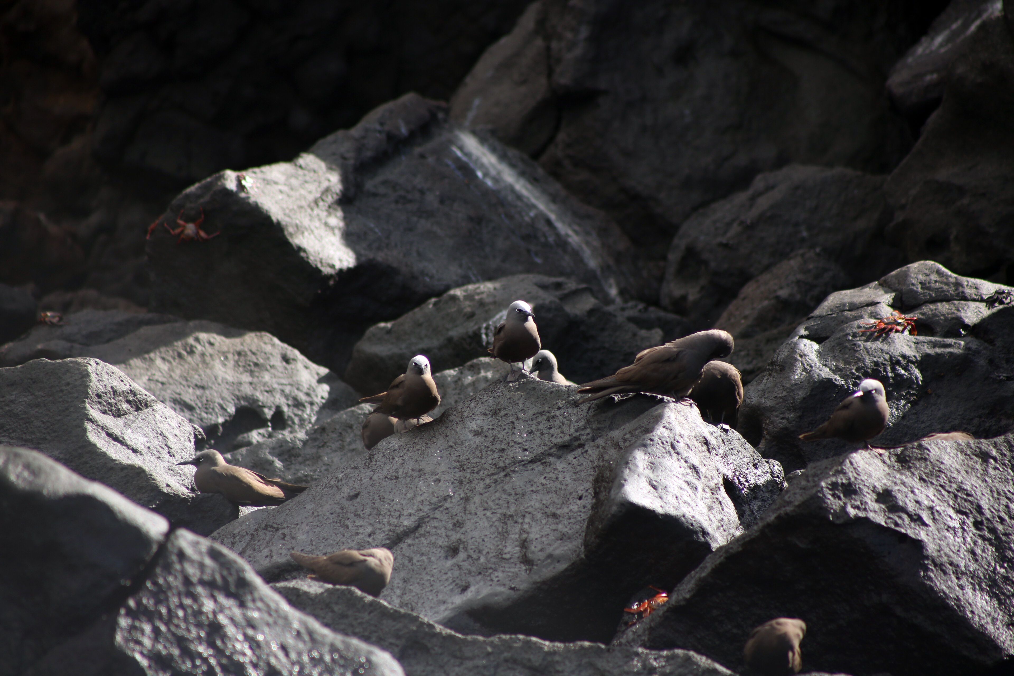 By the afternoon, we navigated for two hours to Rábida Island. After an introduction to the marine world of the Galapagos Islands, we ended our day with a stroll over an iron-oxide beach. The trail goes around a saltwater lagoon. We observed fourteen American flamingos, and we even saw a chick and an egg in a nest!