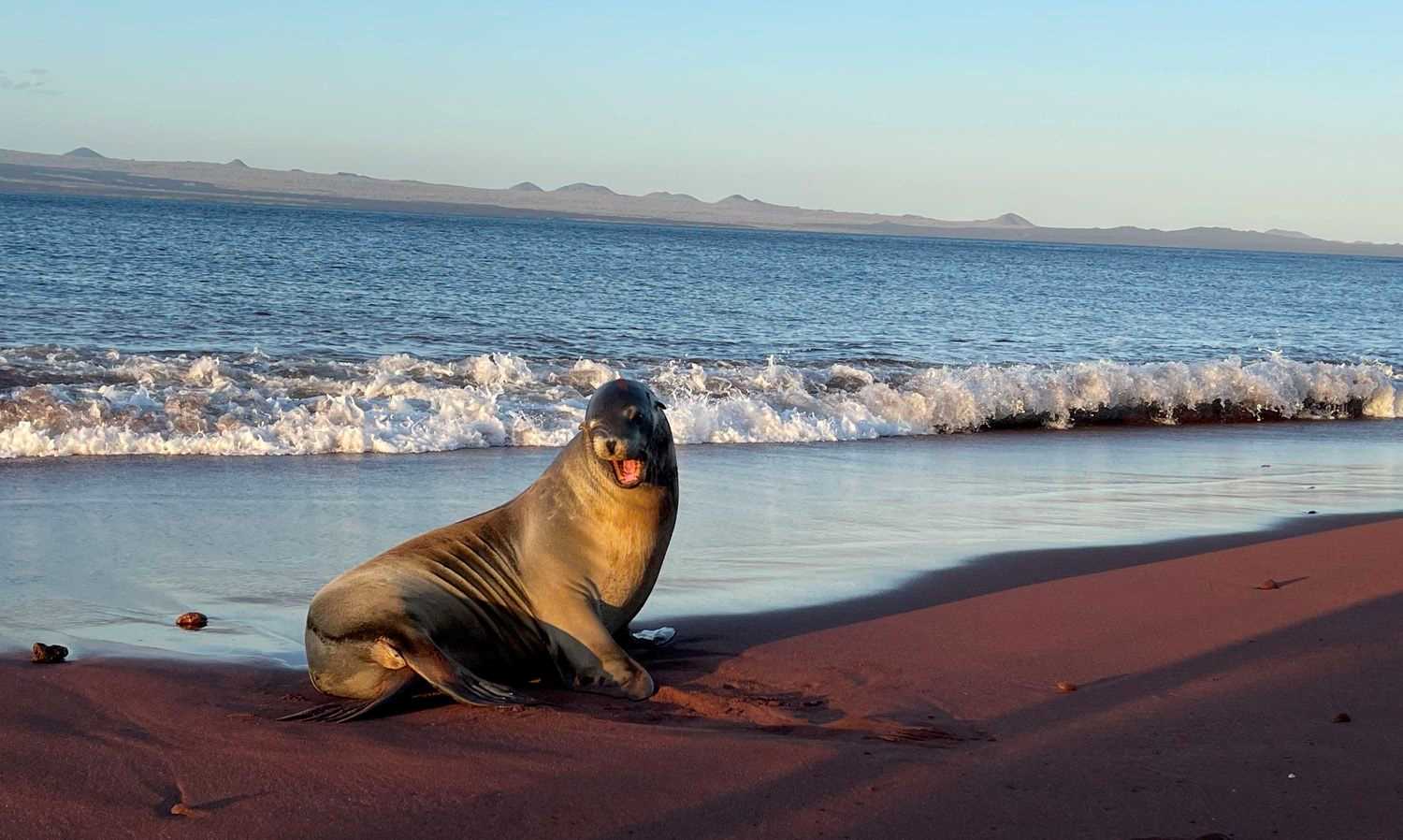 By the middle of the morning, we left North Seymour and headed towards Rabida Island where we spent our afternoon. This island has a red color sandy beach and is the home for Galapagos sea lions.