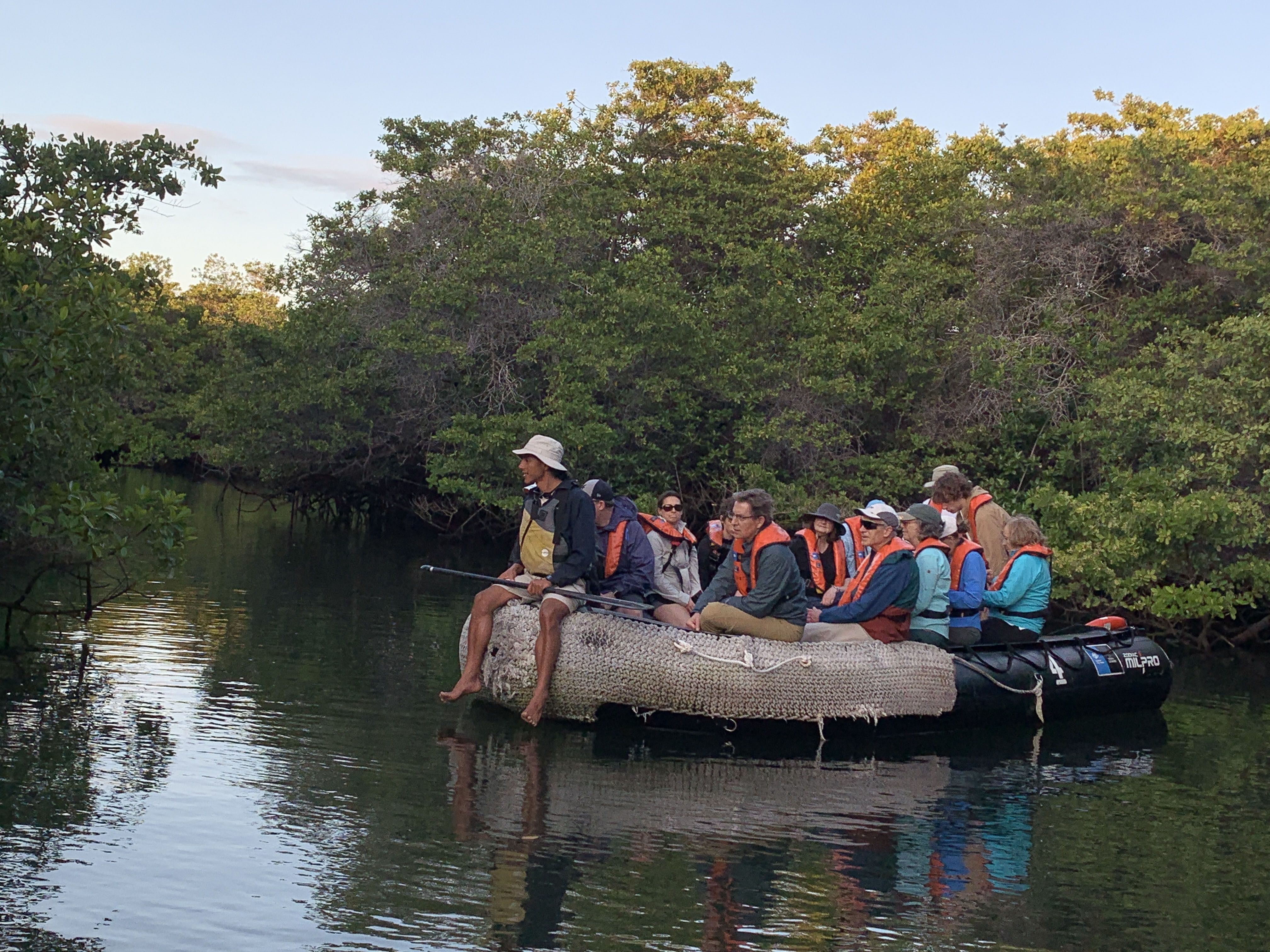On April 24, we started a new voyage. Our guests arrived onboard at 14:00 and by 16:30, they were ready to explore Black Turtle Cove. In four Zodiacs, we departed into the channels of the northern shores of Santa Cruz Island. It was a surprise for all! No one expected to navigate through such a dense forest of mangroves. People usually associate Galapagos with giant Opuntias and barren lava. However, there we were, surrounded by green, red, white, and black mangrove species. The area is a nursery for fish and crustaceans, an important habitat within the tropics. Fortunately, the area is protected in the Galapagos. Therefore, we encountered dozens of spotted eagle and golden rays as they swam amongst green sea turtles and whitetip and blacktip sharks. As Javier said, it was a lagoon on steroids! After dinner, we enjoyed a perfectly clear sky. I shared the constellations I know with guests, including the famous Southern Cross, half of Orion, and half of Scorpio. The two were visible at the same time but not completely; otherwise, they would have been fighting.