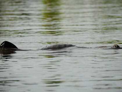Early in the morning we started the day riding our skiffs on the on black water Pacaya river searching for wildlife. We succeeded by finding squirrel monkeys, howler monkeys, and many different birds like egrets, macaws, screamers, hawks, parakeets, hoatzin, even retiles and mammals: caimans, terrapins dolphins, and sloths. But I think this morning’s highlight was a small manatee that was drifting while floating mostly out the surface. We first thought it wasn’t alive, only when drew near were we able to see its mighty power. It was stirring a lot of water in a successful way to feed. Seeing a manatee in the Upper Amazon is truly unprecedented, you can see it clearly in our naturist’s eyes, for this was a very rare event and we were extremely lucky to witness a very elusive mammal.