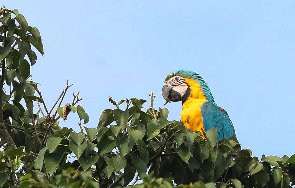 We had an early skiff ride along the Pacaya river in search for squirrel monkeys, scarlet macaws, yellow and blue macaws and any other early riser wildlife that is active at this time of the day. We were lucky to spot a few of the squirrel monkeys, as well as some blue and yellow macaws and red belly macaws sitting together on the same tree.