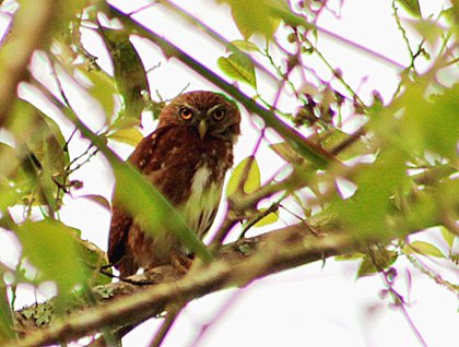 Then we continued with our exploration along the river. Birds came to us. We spotted the colorful festive parrots, and some blue-and-yellow macaws flying. The highlight was a very unusual pygmy-owl that was resting on a branch. Neo-tropical cormorants posed for our lenses and finally we spotted some capuchin and squirrel monkeys troops for our delight! Jumping from one branch to the next they kept at their journey along the forest while we enjoyed watching their acrobatic movements.