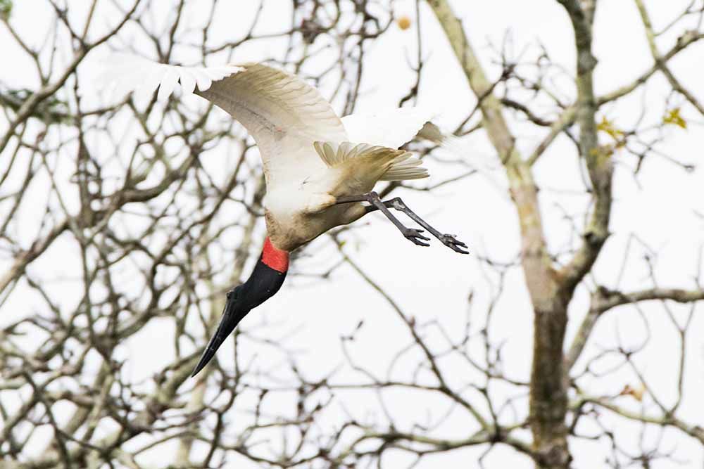 This morning the rainforest greeted us with beautiful sunshine, a nice warm breeze on our faces, large birds all around, and a magnificent landscape home to sloths as well as raptors and many other birds. Our destination was the Pacaya River and the surrounding forest with all its surprises. As soon as we boarded our fleet of skiffs, we started spotting wood storks and many great egrets together with cormorants. Some of them were perched on trees, others were fishing in the shallow black waters of the Pacaya River.