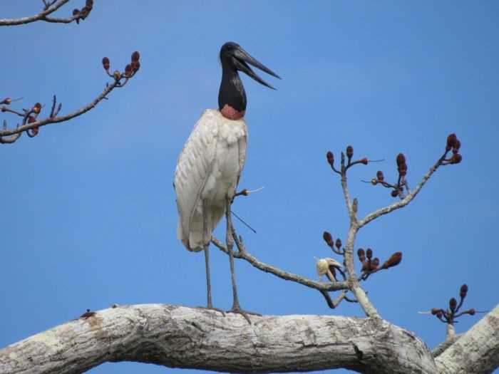 This morning we braved the low clouds and gray skies and headed out into the heart of the Pacaya-Samiria Reserve.  The light drizzle was short lived and soon we were viewing new species of birds on our trip, including huge wood and jabiru storks.  These great birds were not the only new species for us—we added to our mammal list as well with the sighting of four red-howler monkeys languidly feeding on leaves.
