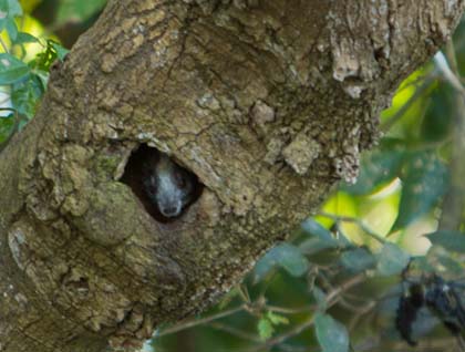 This morning we explored the Zapote River. Here we were rewarded with  two new mammal sightings: the yellow-crowned brush-tailed rat and the saddle-backed tamarin. The yellow-crowned brush-tailed rat poked its head out of its hole in the branch of a tree that hung over the river. It was very photogenic with a grayish stripe on the center of its face and black on the sides. The saddle-backed tamarin was larger than the smallest monkey we have seen—tiny pygmy marmoset but also long tailed and speedy and as it ran around the trees. At the end of the morning we stopped at the small village near the mouth of the river. These people truly live in the varzea or flood forest. Their houses, built on stilts, are adapted for the several feet of water that will flood under them when the water reaches higher points in a month or two.