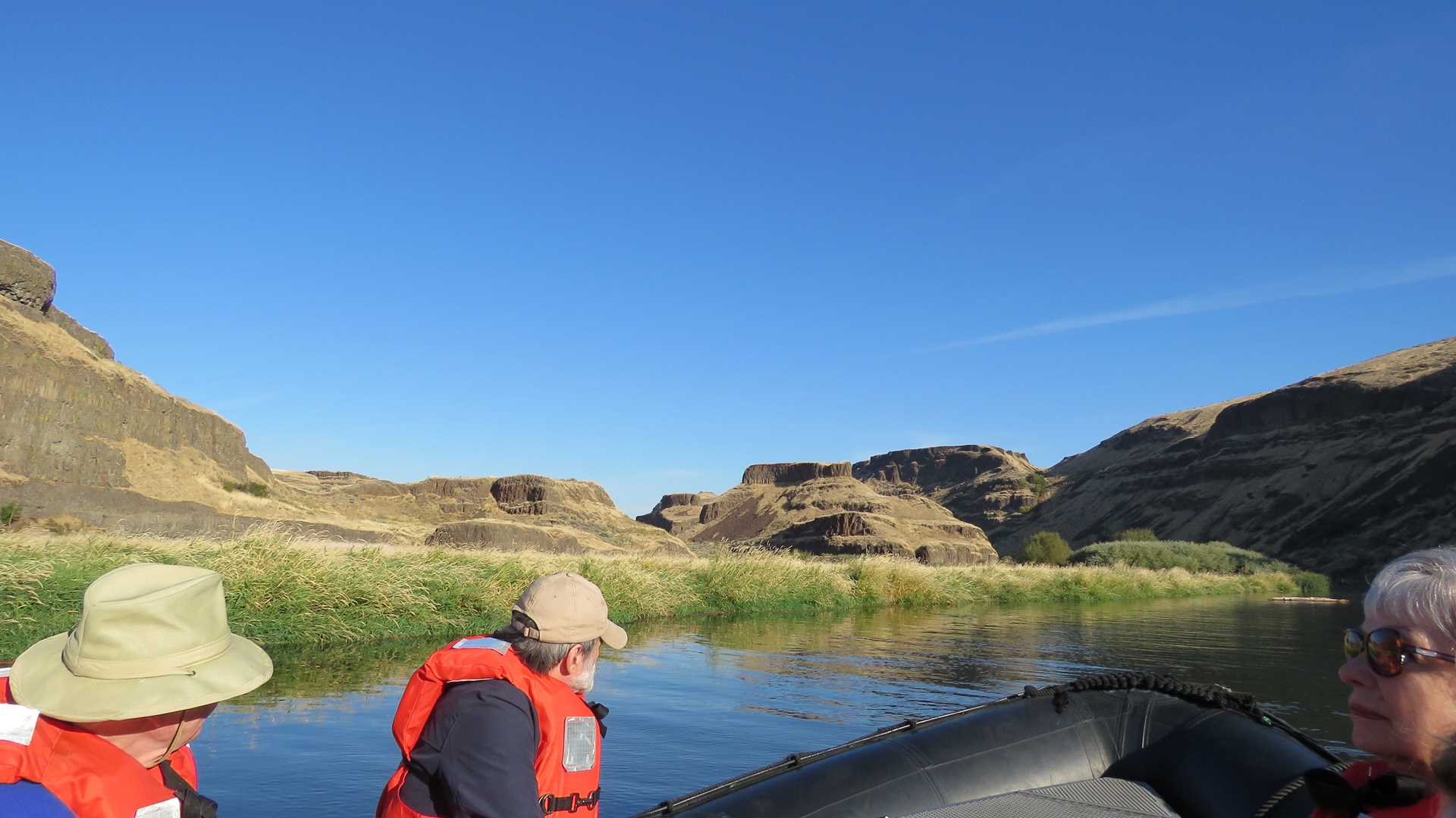 We woke up anchored near the confluence of the Palouse and Snake Rivers, with a beautiful alpenglow on the golden hills. In the morning, many of us explored the Palouse River via kayaks and expedition landing craft tours, while some of us took a short bus ride 4 miles upriver to see the beautiful and dramatic Palouse Falls.
