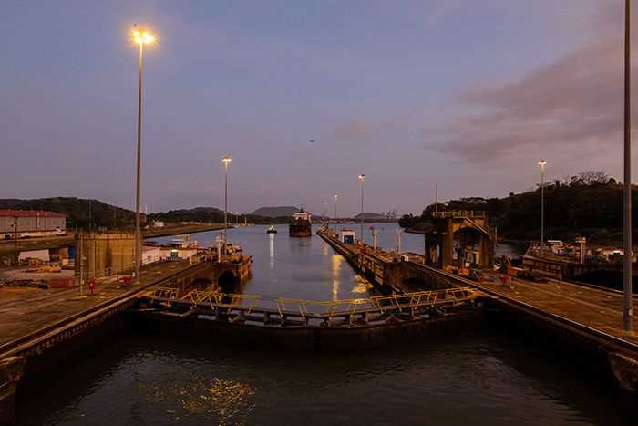 This morning we entered the Panama Bay, or Golfo de Panama, on our way to one of the highlights of the trip: the Panama Canal. Transiting through the Panama Canal is always a memorable event. As the ship gets lifted up through the locks, seemingly easily, it is difficult to appreciate the magnitude of this operation.